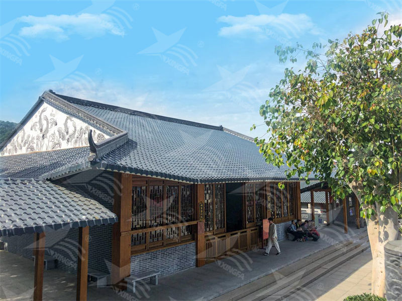 樹脂瓦兼具仿古和現(xiàn)代造型,外觀細(xì)膩,無色差,整體磨料均勻,大幅提升了建筑的美觀度。無論是新農(nóng)村建設(shè)還是城市建筑,樹脂瓦都能與各種風(fēng)格完美融合,為建筑增添獨(dú)特的視覺效果。